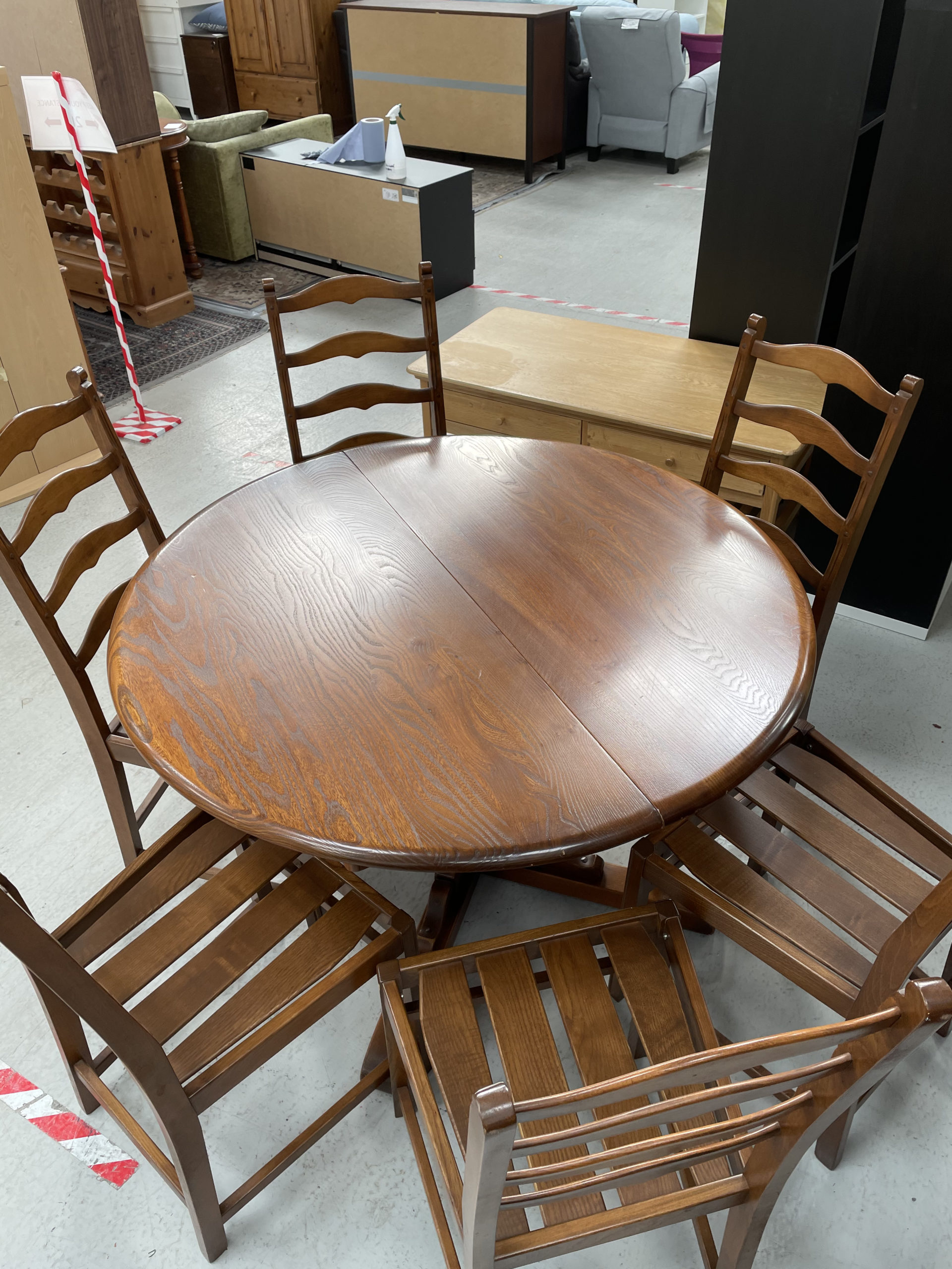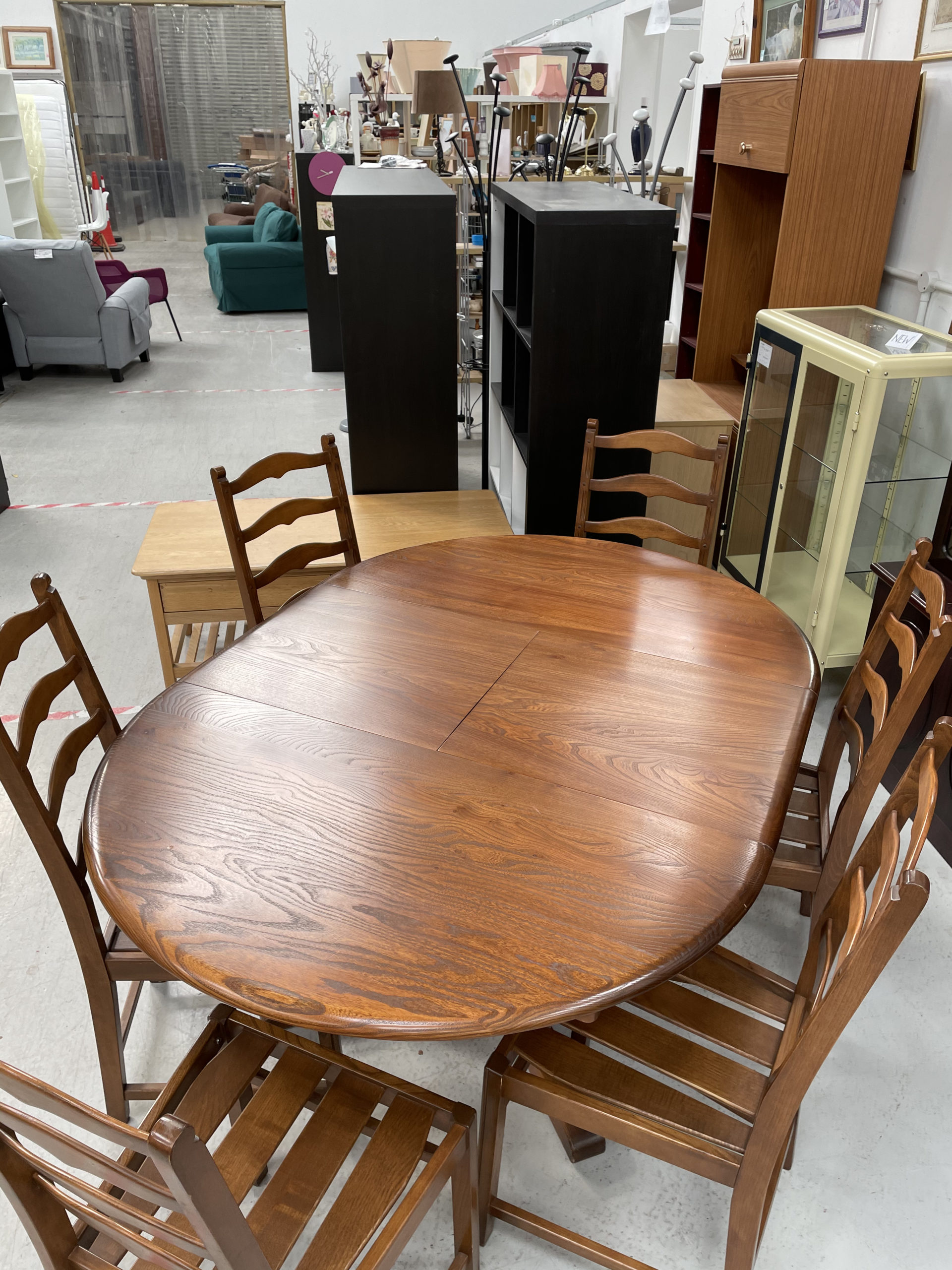 ERCOL EXTENDING TABLE & 6 CHAIRS. USUAL ERCOL QUALITY.